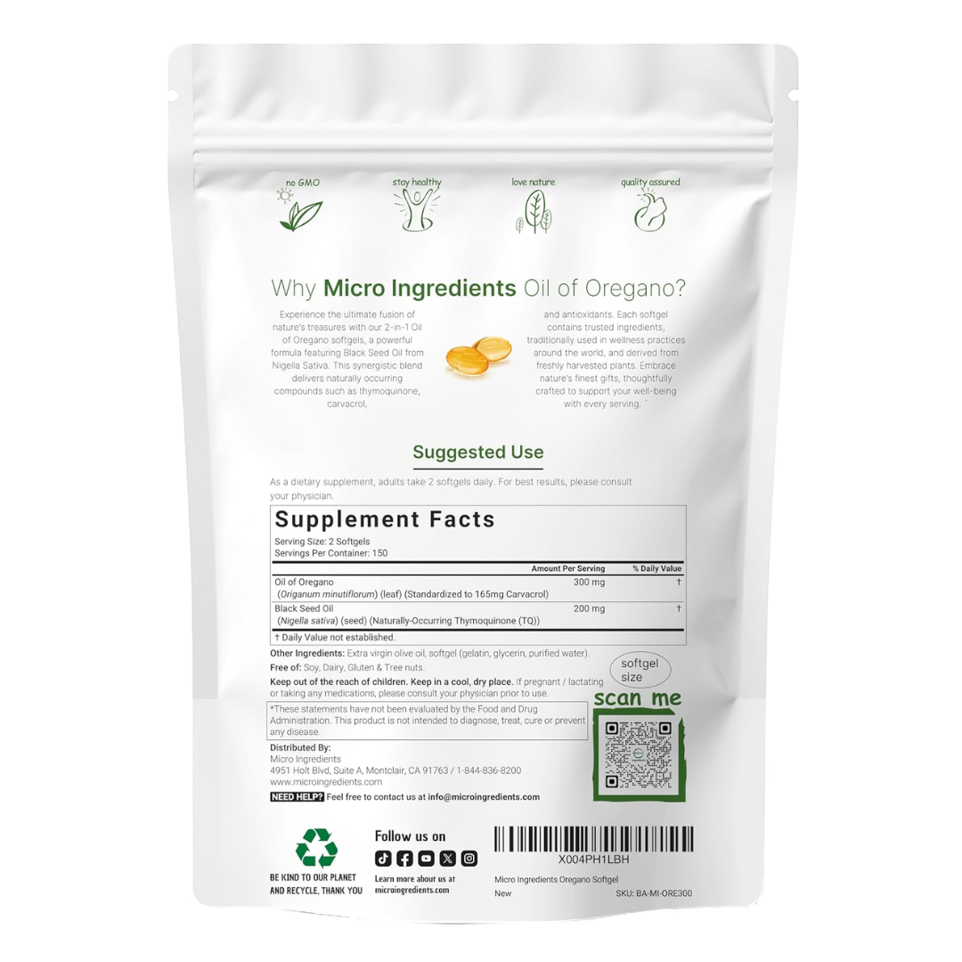 It's all about what's inside. We've packed a potent 20:1 oregano extract to retain 165mg of Carvacrol and paired it with the naturally occurring Thymoquinone in black seed oil. This isn't just a blend; it's a powerful herbal complex designed for real support