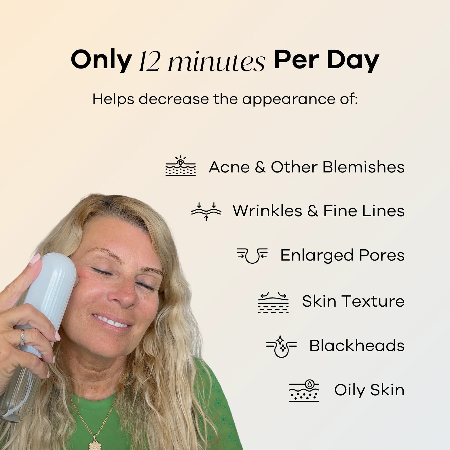 Spending just 12 minutes weekly provides skincare benefits like going to a beauty clinic every week, without the continual costs, time commitment, and upselling.